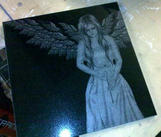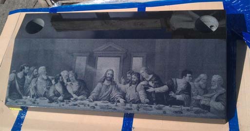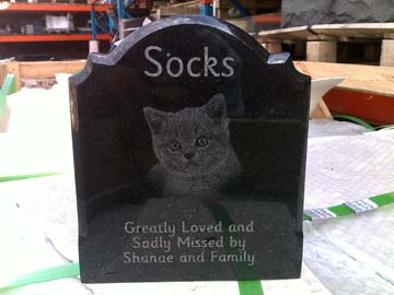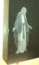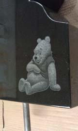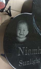 If you choose your memorial to be crafted in traditional polished black granite, then any photograph or image provided by yourself can be skillfully laser etched directly onto the memorial. Should you prefer your memorial to be crafted in one of our many coloured granites, your image can be etched onto an elegant polished black granite plaque and then skillfully secured onto your memorial.